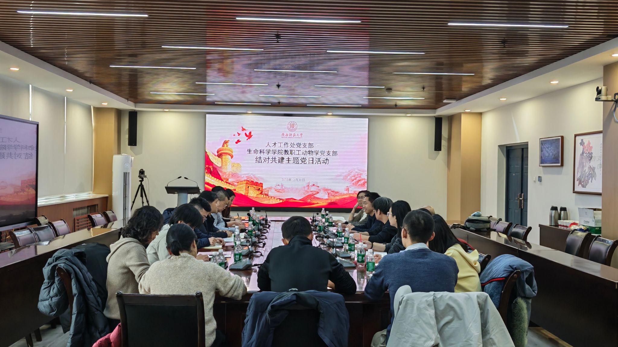 为深入落实机关党委推进基层党建的相关要求,促进党建与业务工作深度融合,12月30日下午,人才工作处党支部与生命科学学院教职工动物学党支部在格物楼2401会议室,以“学习贯彻党的二十届四中全会精神 切实加强人才队伍建设”为主题,联合开展结对共建主题党日活动。生命科学学院党委书记焦维军、副院长杜祥云受邀参加,活动由人才工作处党支部书记张卫兵主持。