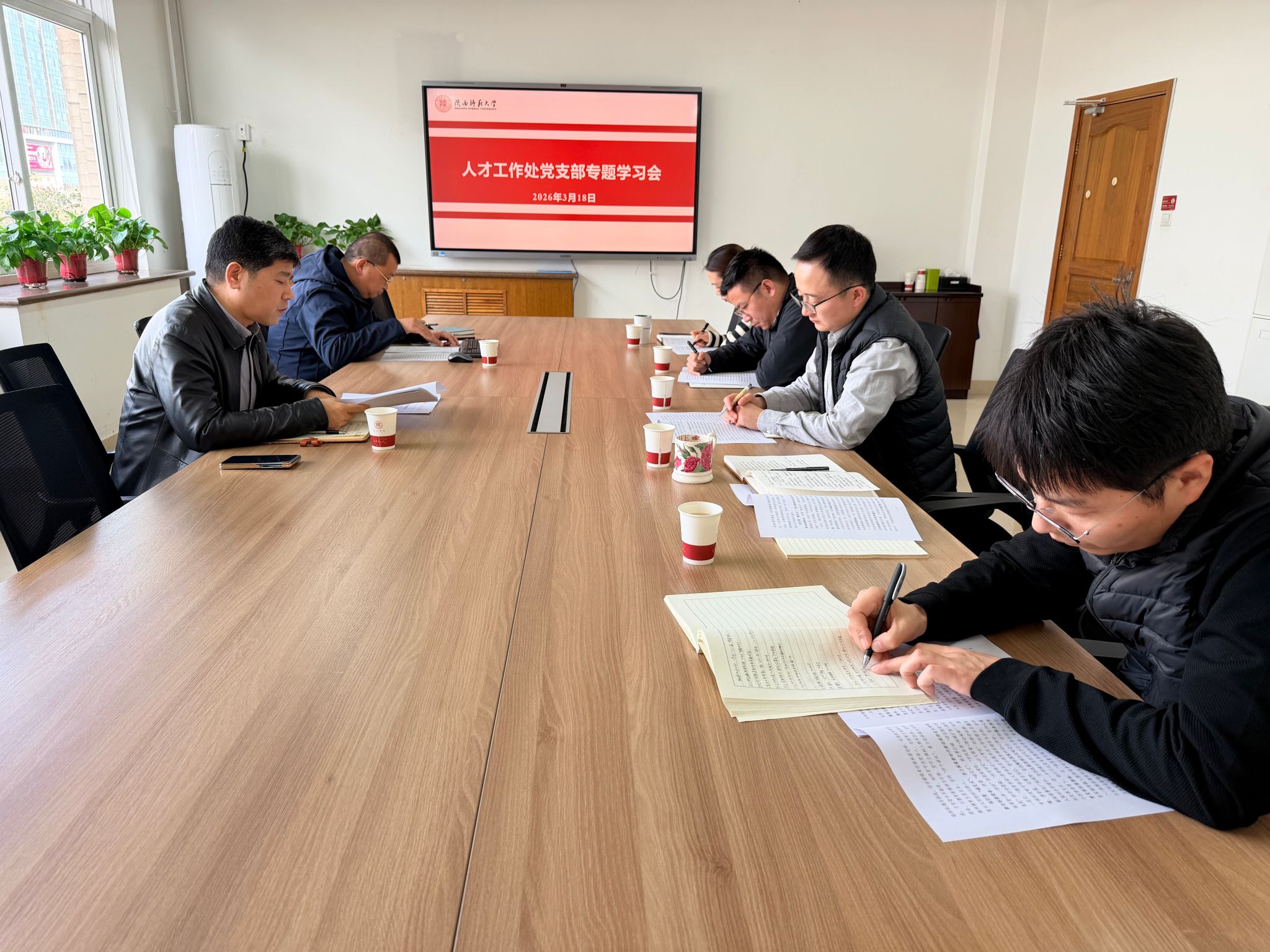 为深入贯彻落实党中央及学校党委关于树立和践行正确政绩观学习教育的部署要求,3月18日下午,人才工作处党支部在校务楼426会议室召开专题学习会,全体党员参会,党支部书记张卫兵主持会议。